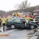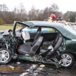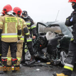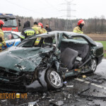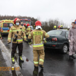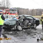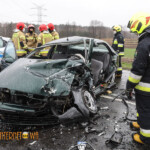 Z naprzeciwka w kierunku Bełchatowa jechał samochód marki BMW. Niestety kierujący nie zdążył wyhamować. Do wydobycia zakleszczonego poszkodowanego z fiata strażacy musieli użyć specjalistycznego sprzętu hydraulicznego rozcinając pojazd. W wyniku zderzenia poszkodowane zostały dwie osoby z fiata, które po udzieleniu pierwszej pomocy medycznej, zostały przewiezione do szpitala w Łodzi.