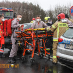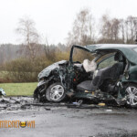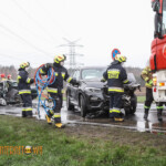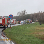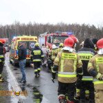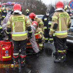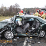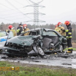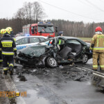 Poszkodowany kierowca prawdopodobnie doznał złamania obu kończyn dolnych a jego pasażerka uskarżała się na ból dłoni i kręgosłupa. Droga w obu kierunkach jest zablokowana. Na miejscu zdarzenia pracują 3 zastępy straży pożarnej. Policja ustala dokładne przyczyny wypadku.