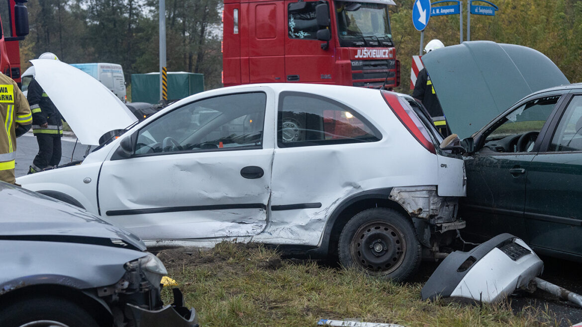 Groźnie na skrzyżowaniu w Porębach. Dwie osoby poszkodowane. [ZDJĘCIA]