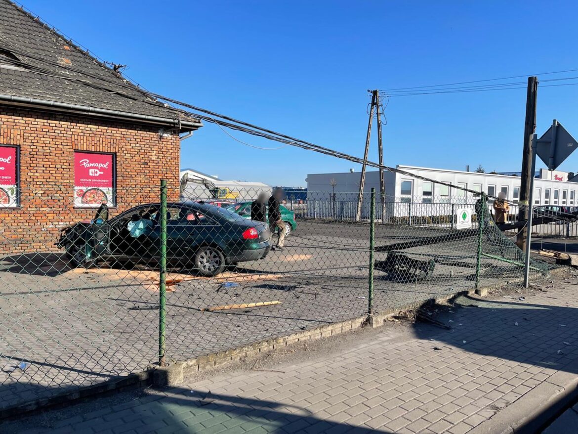 W wyniku zderzenia kierujący zielonym audi przebił się przez płot i zatrzymał przed sklepem firmowym zakładu. Obecni na miejscu funkcjonariusze przebadali kierujących na zawartość alkoholu i niestety okazało się, że kierowca audi w wydychanym powietrzu ma ponad 1 promil alkoholu. Jedna osoba została przetransportowana do szpitala.