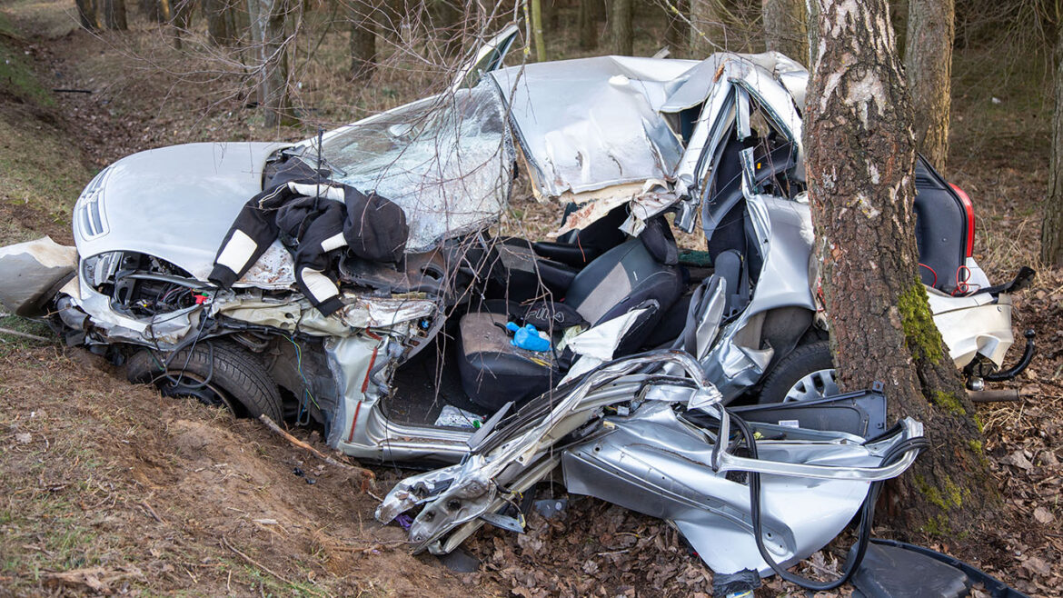 Odbił się od jednego drzewa, przeleciał kilka metrów i swoją podróż zakończył na innym drzewie. Siła uderzenia była tak duża, że części samochodu porozrzucane były w promieniu kilkunastu metrów od pojazdu. By wydostać poszkodowanego z wraku samochodu, strażacy musieli użyć ciężkiego sprzętu hydraulicznego.
