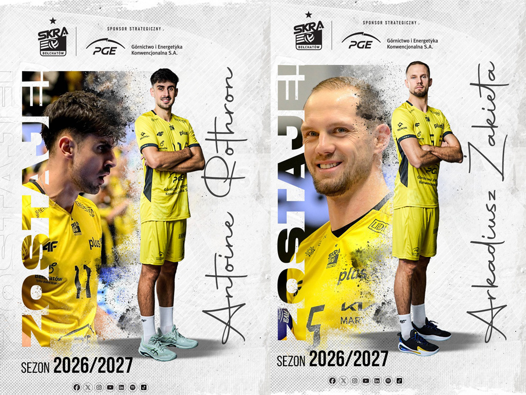 Władze PGE GiEK Skry Bełchatów nie zwalniają tempa w budowaniu składu na nadchodzące lata. Klub oficjalnie potwierdził, że w zespole na sezon 2026/2027 zostają dwaj kluczowi zawodnicy: atakujący Arkadiusz Żakieta oraz francuski przyjmujący Antoine Pothron. To jasny sygnał dla ligowych rywali – Bełchatów wraca do gry o najwyższe cele.