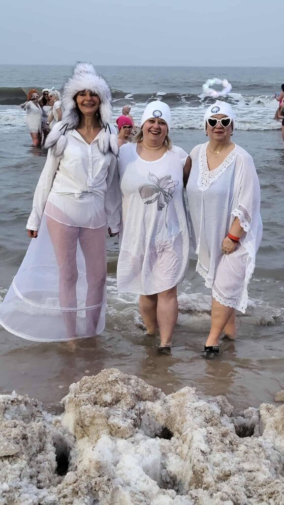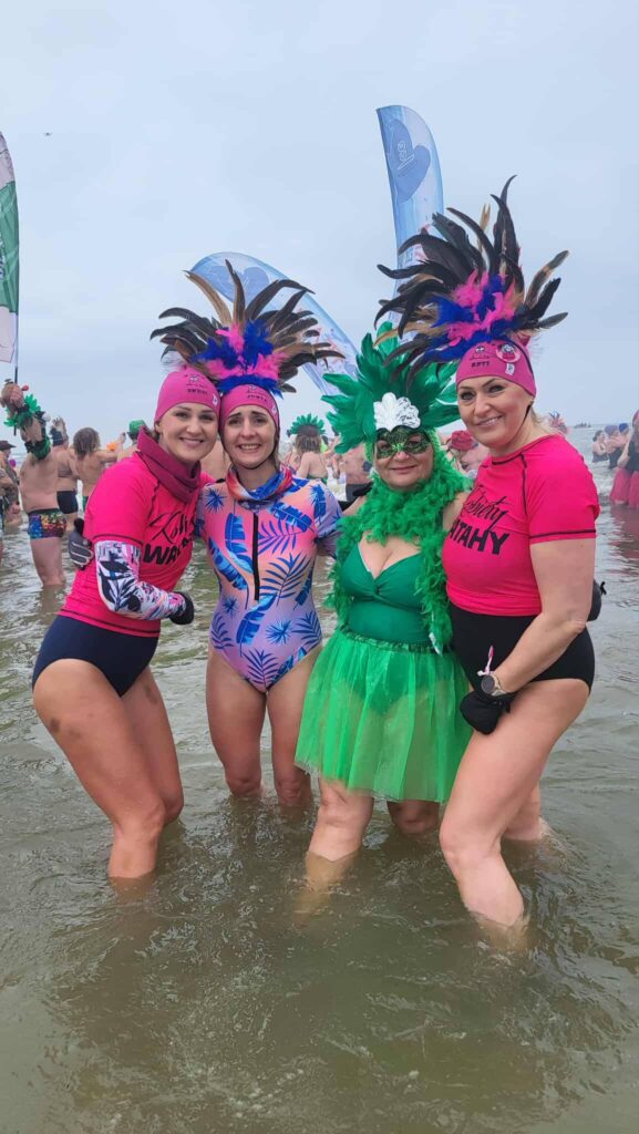 Finałowa kąpiel, która odbyła się w niedzielę o godzinie 12:00, była prawdziwym testem charakteru. Przy dźwiękach energetycznych rytmów, tysiące osób jednocześnie weszło do Bałtyku. W tym błękitnym tłumie wyraźnie widoczna była ekipa „Zimnych Zadków”, dla której lodowata woda to naturalne środowisko.